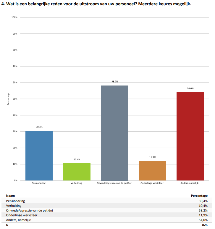 Uitstroom van apothekerspersoneel is al langer een probleem. De branche lijkt vooral moeite te hebben met het binden van jonge werknemers. Dat onvrede en agressie van de patiënt hier niet aan bijdraagt blijkt uit de enquête van KNMP. Namelijk, met 58,2% is dit de belangrijkste reden voor de uitstroom van apotheekpersoneel.